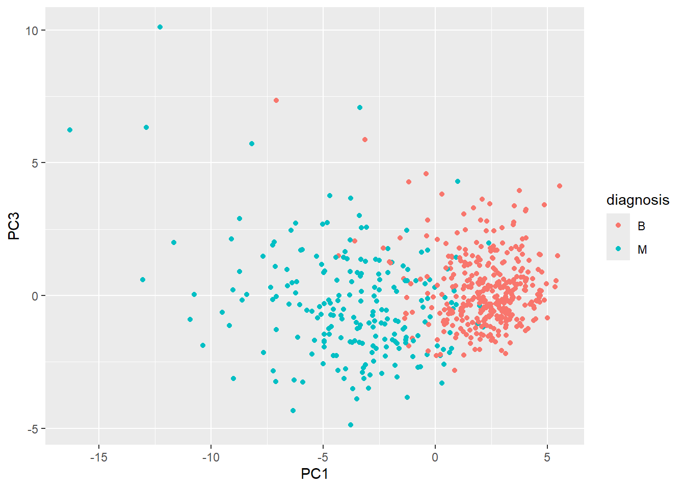 aes(PC1, PC3, col=diagnosis) +